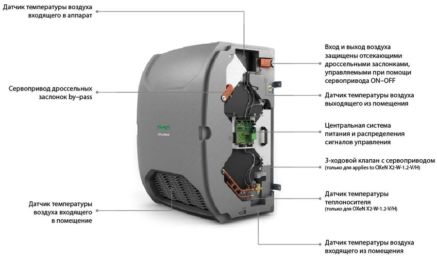 Серия моделей с рекуперацией тепла OXeN для организации приточно-вытяжной вентиляции без необходимости установки системы воздуховодов от польского производителя FLOWAIR. Установки оснащены интегрированной системой автоматизации. Управляются одним контроллером сенсорного экрана T-box. Оборудование полностью готово к работе и не требует дополнительных монтажных кронштейнов, так как входят в стандартную комплектацию.