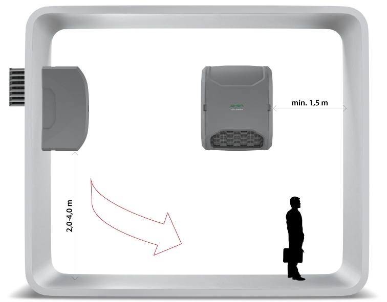 X2-W-1.2-H – установка с водяным обогревом, подпотолочный монтаж