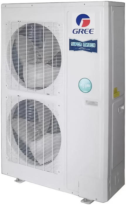 Наружный блок Gree (Гри) Free match GWHD(56S)NM6EO оборудован двумя вентиляторами и применяется для объединения до 9 модуль в одну мульти сплит-систему. Высокоэффективное устройство работает на основе инверторной технологии, а также при помощи фреона R32. Функция самодиагностики гарантирует стабильность и надежность.