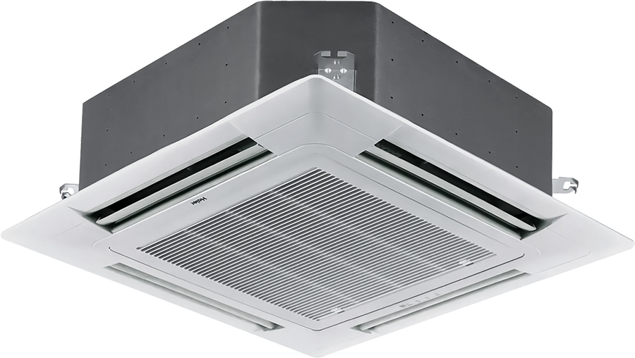 Haier (Хайер) AB482MNERA внутренний кассетный блок имеет производительность в режиме охлаждения в пределах 14 кВт, которой достаточно для кондиционирования воздуха в помещениях площадью до 140 квадратных метров. Регулярные потоки воздуха попадают в помещение через специальные решетки с четырех сторон.
