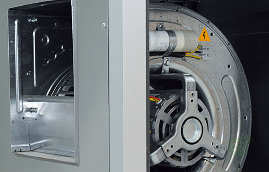 - Сбоку вентилятора расположена съемная панель для инспекции и проведения плановых работ. Доступ внутрь вентилятора обеспечивается с помощью треугольного ключа.