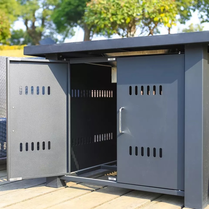 Газовые уличные обогреватели типа стол-камин серии Spis торговой марки Stalleh имеют оригинальную конструкцию и неповторимый дизайн. Корпус устройств выполнен из стали. Инновационный отопительный прибор одновременно является ярким элементом декорирования. Значительным плюсом является специальный наполнитель для очага. Это оригинальные камни, которые мягко светятся при зажжённой горелке.
