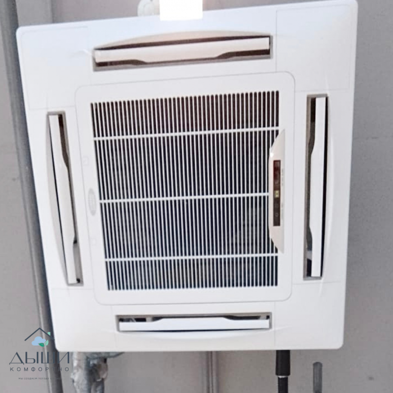 Для данного объекта был выбран кассетный фанкойл General Climate GCKA-750R, который отлично подходит для для стабилизации микроклимата в помещениях с большой площадью. Наша компания выполнила монтаж и поставку оборудования, монтаж проходил на высоте более трёх метров, после чего были произведены пуско - наладочные работы.