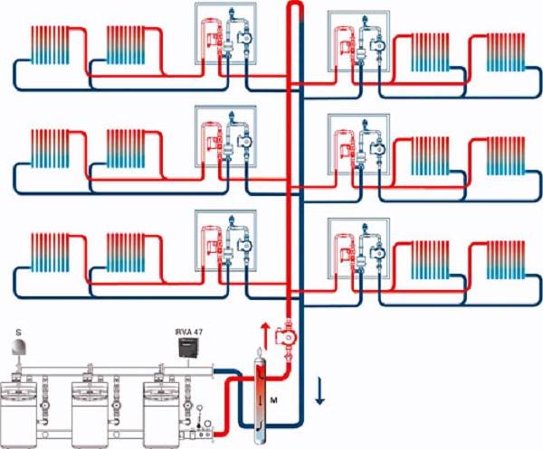 Важно. Система отопления может иметь одно- или двухтрубное исполнение. В первом случае возможен неравномерный прогрев помещений по мере их удаленности от котла или коллектора. Второй вариант более эффективен за счет обратной магистрали, которая отвечает за отвод остывшей воды к нагревательному контуру.